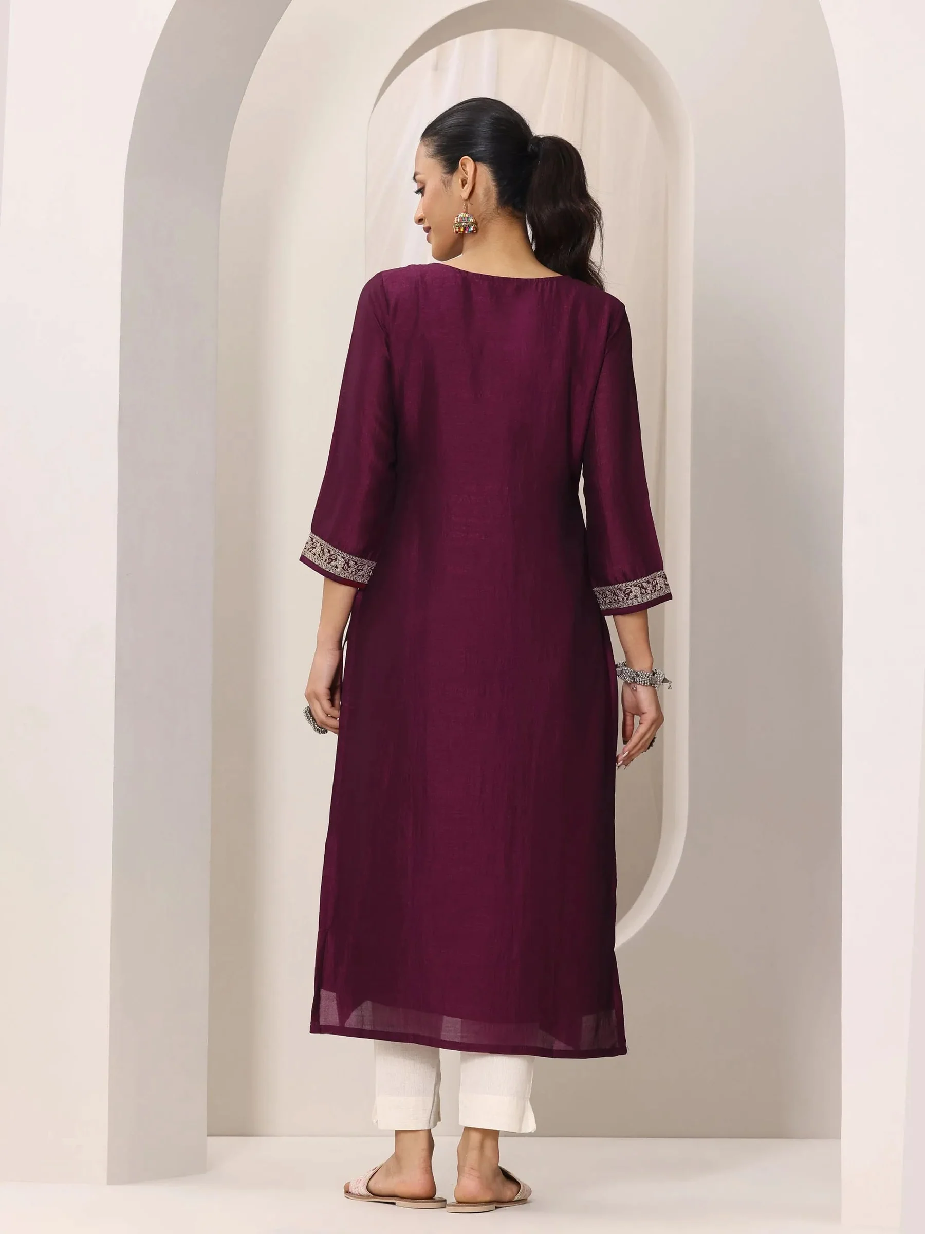 Wine Yoke Design Silk Kurta
