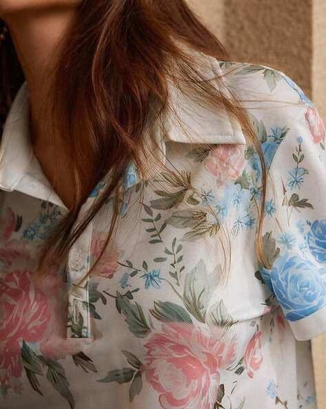 Design: Classic Polo Collar with Button Placket and All-Over Floral Print